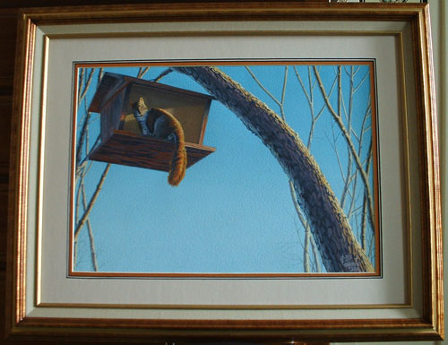 This red squirrel claimed this birdfeeder for his own, continually battling countless chickadees, nuthatches, blue jays and even getting the best of another red squirrel. He put on quite a November show, successfully attempting to get sole possession of the feeder during deer season in northeastern Minnesota, a show that was well worth the price of admission.